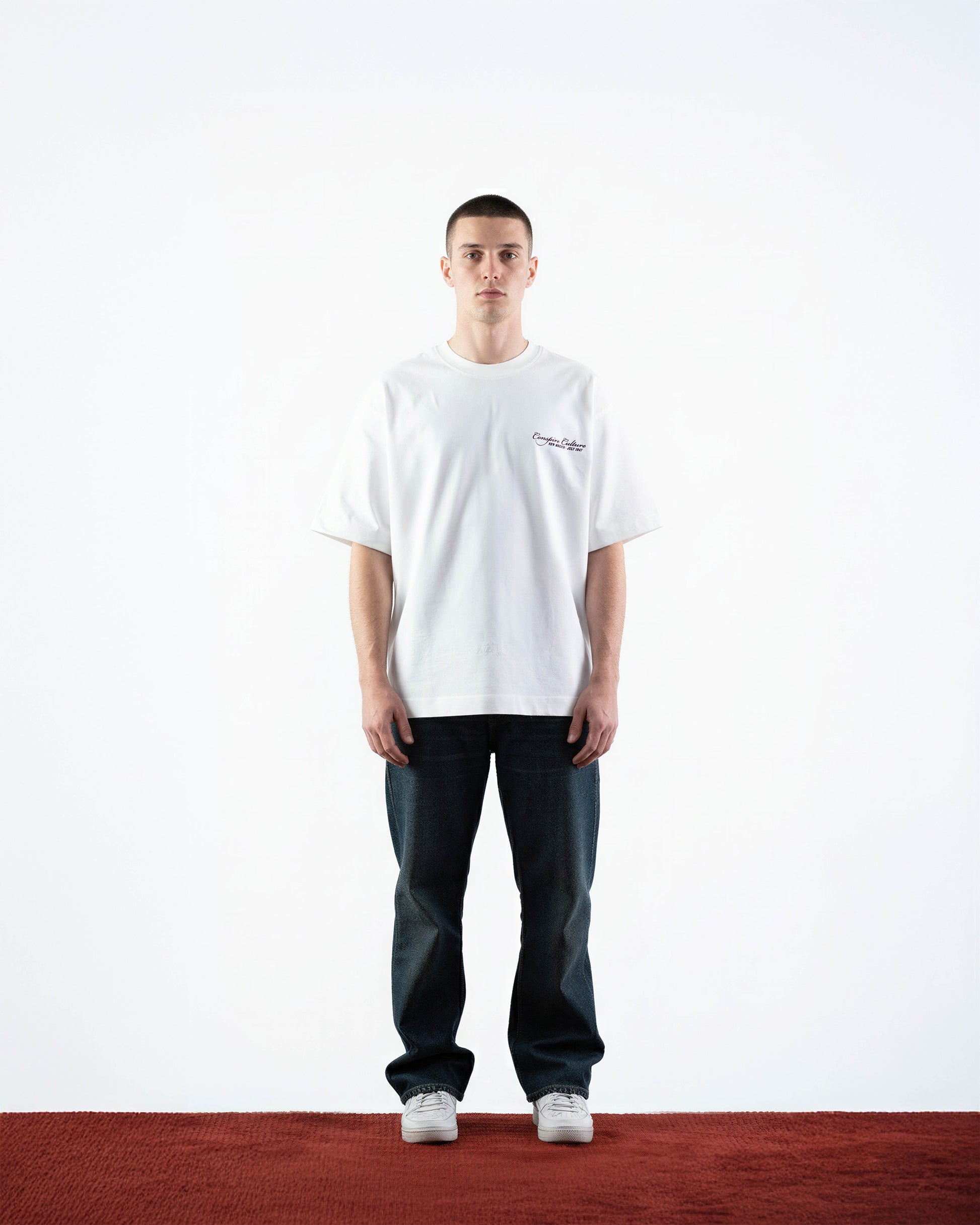 This heavyweight, relaxed-fit tee in crisp white offers a different perspective on the Roswell mystery. Constructed from 290gsm organically grown cotton, it provides both substantial comfort and a clean aesthetic.
