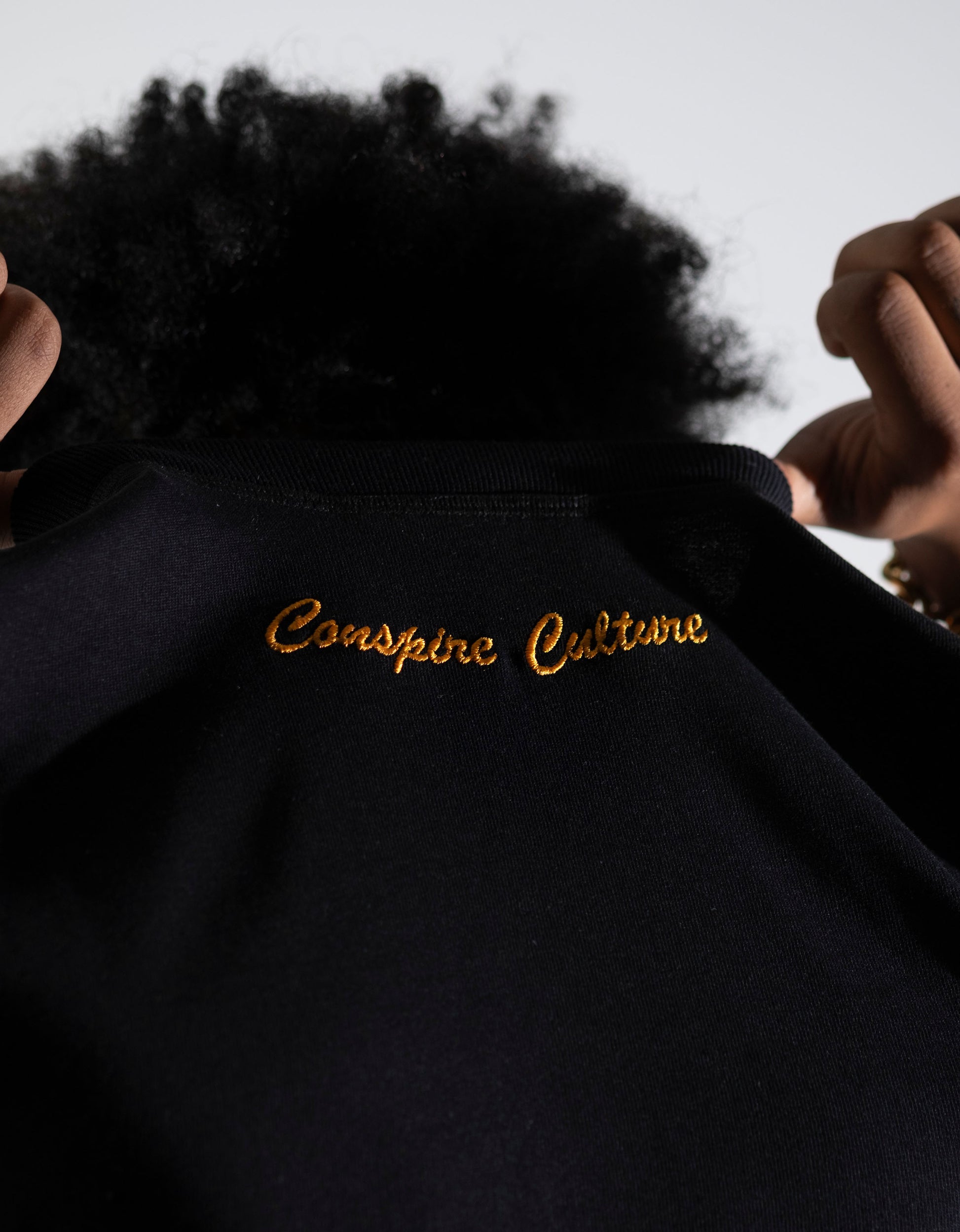 Imagine the substantial feel of 290gsm organically grown cotton against your skin – this is the foundation of elevated comfort. This heavyweight tee is more than just apparel; it's an experience. The provocative "NEVER TRUST THEM" print on the chest is meticulously applied for lasting impact, balanced by the stitched Conspire Culture insignia on the reverse, a hallmark of quality. The apparent overlock detailing on the shoulders and side seams adds a layer of visual intrigue, hinting at the robust construction beneath. Designed in a relaxed, unisex fit, the crew neckline is expertly crafted with a precise 3cm width, sitting close to the neck for a subtly enveloping and refined feel. This black tee offers an understated yet powerful elegance, grounded in ethically sourced, organic cotton.